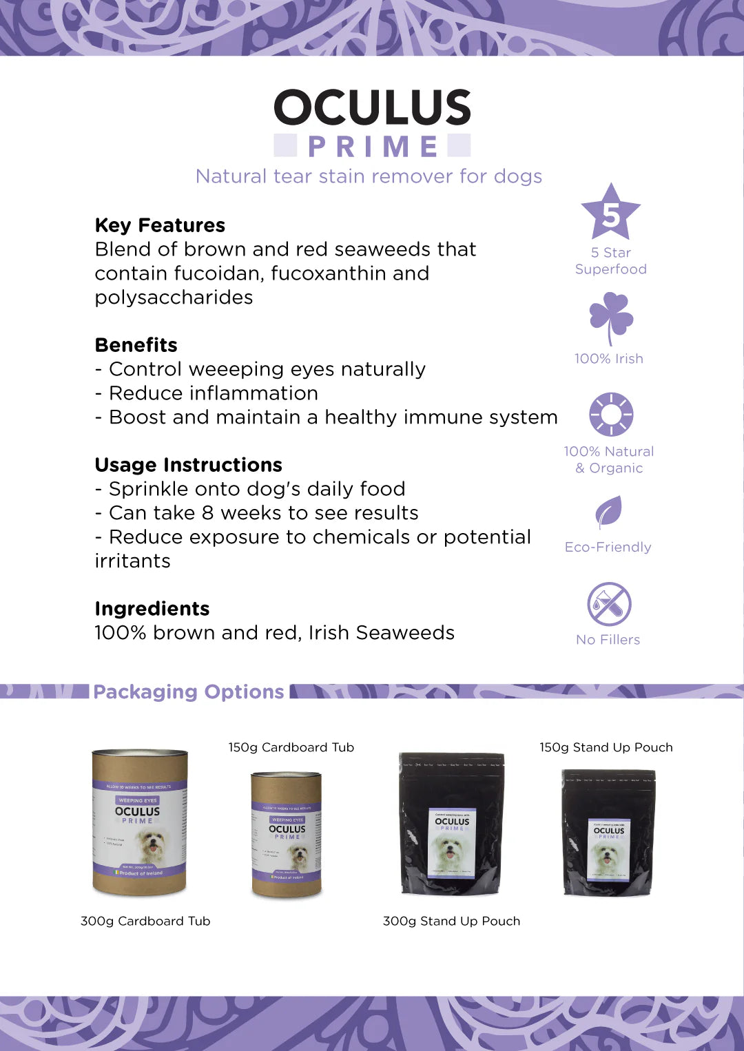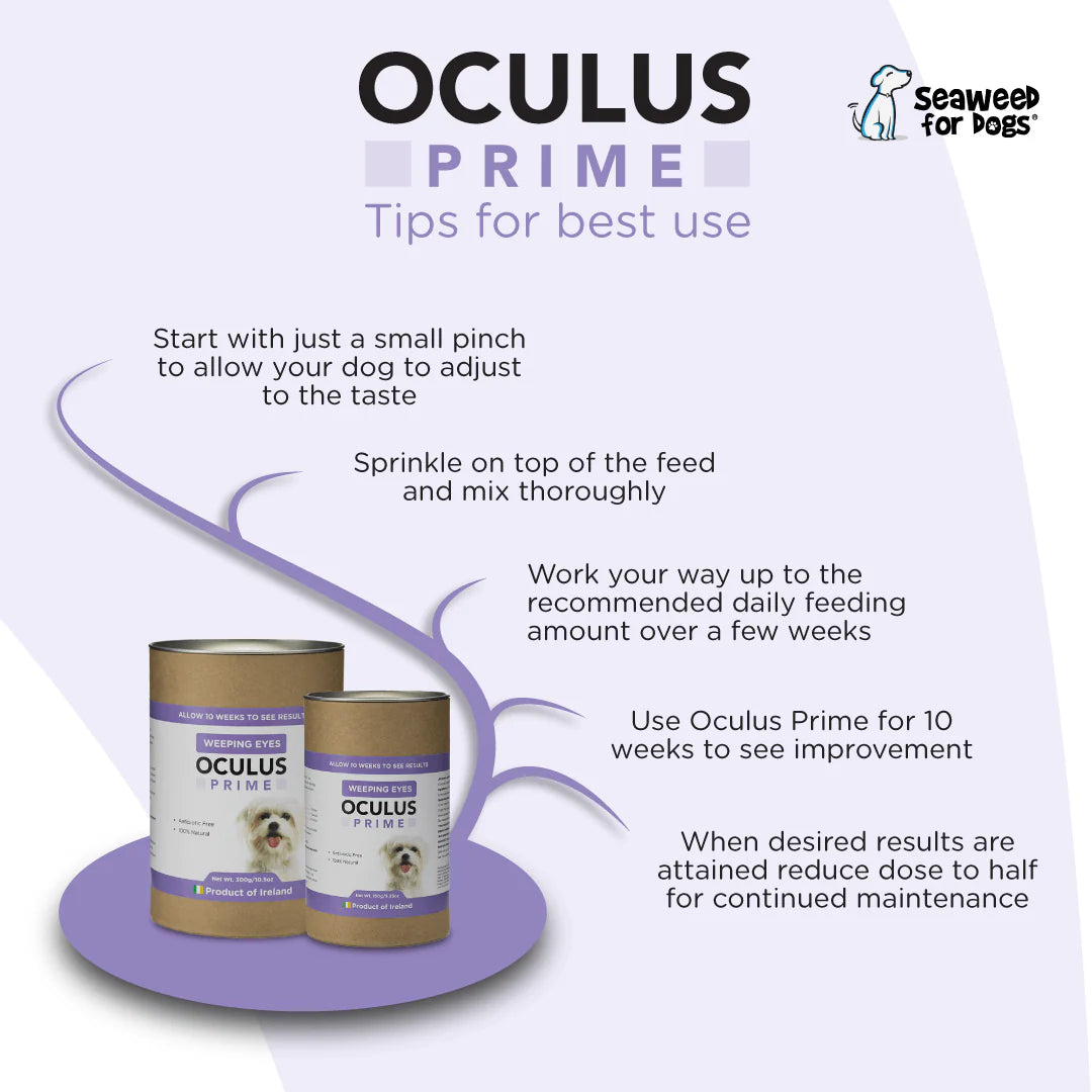 - Natural Ingredients: Oculus Prime is a blend of red and brown seaweeds, formulated by marine scientists, ensuring it's safe and effective for your dog.